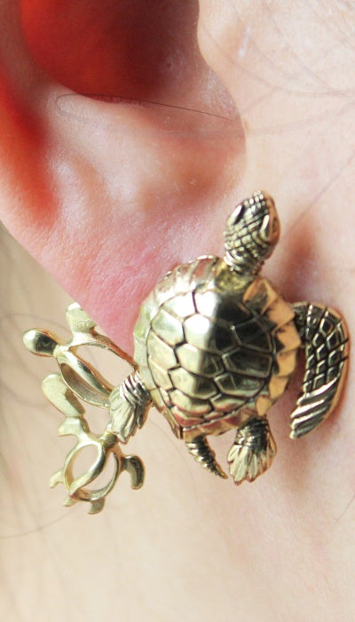 Turtle family, Turtle mom and turtle babies, Hawaiian style, ocean animal, Sea turtle, Aloha, Navigator, Halloween party, Costume party earring design.