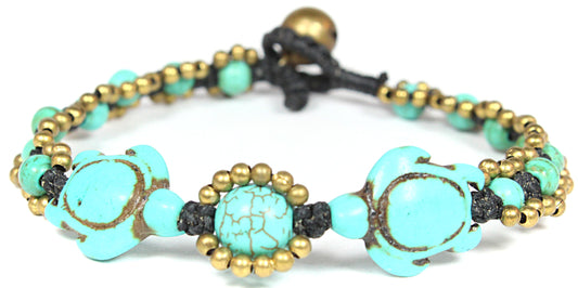 Handmade macramé bracelet with carved stone turtles