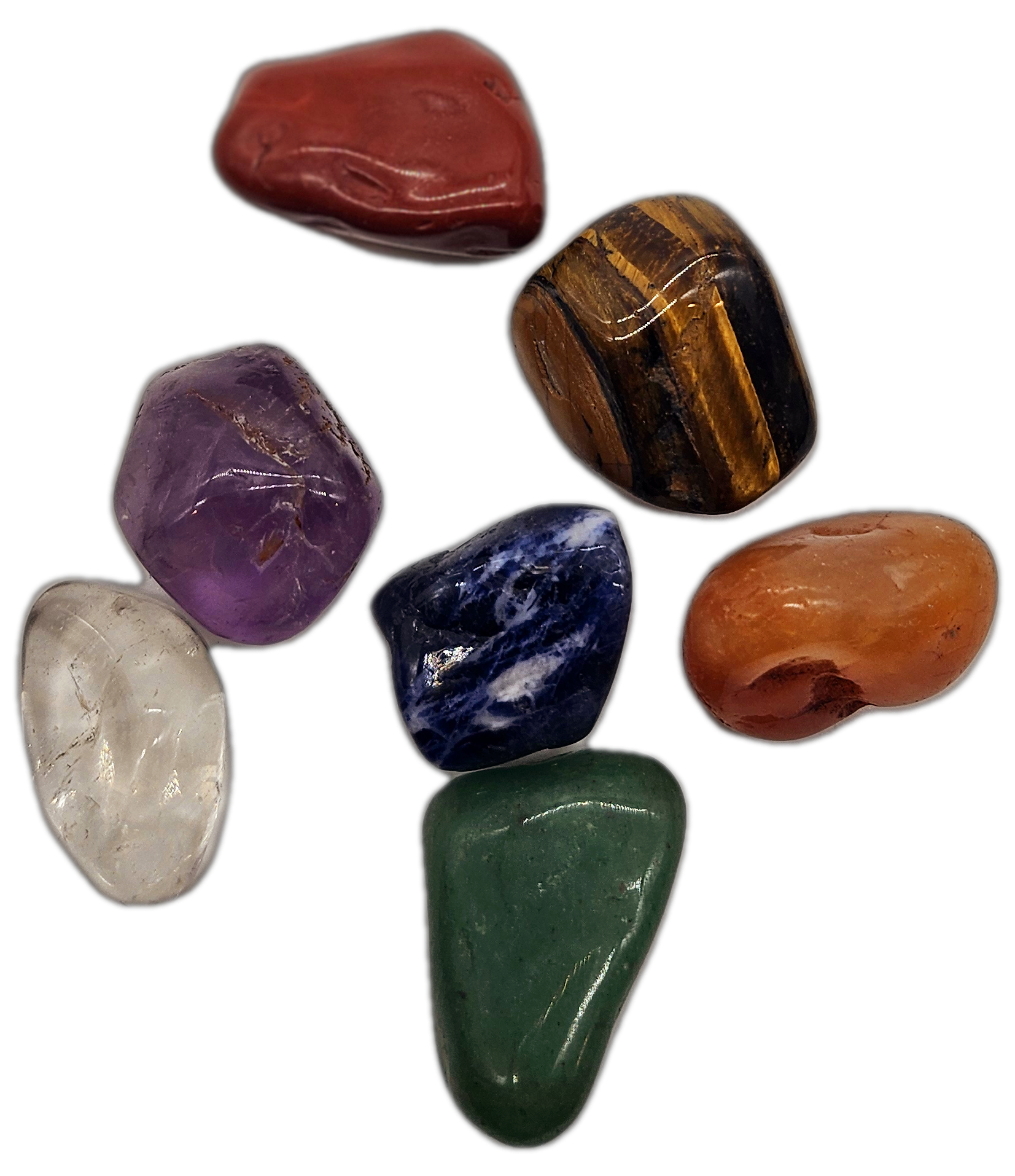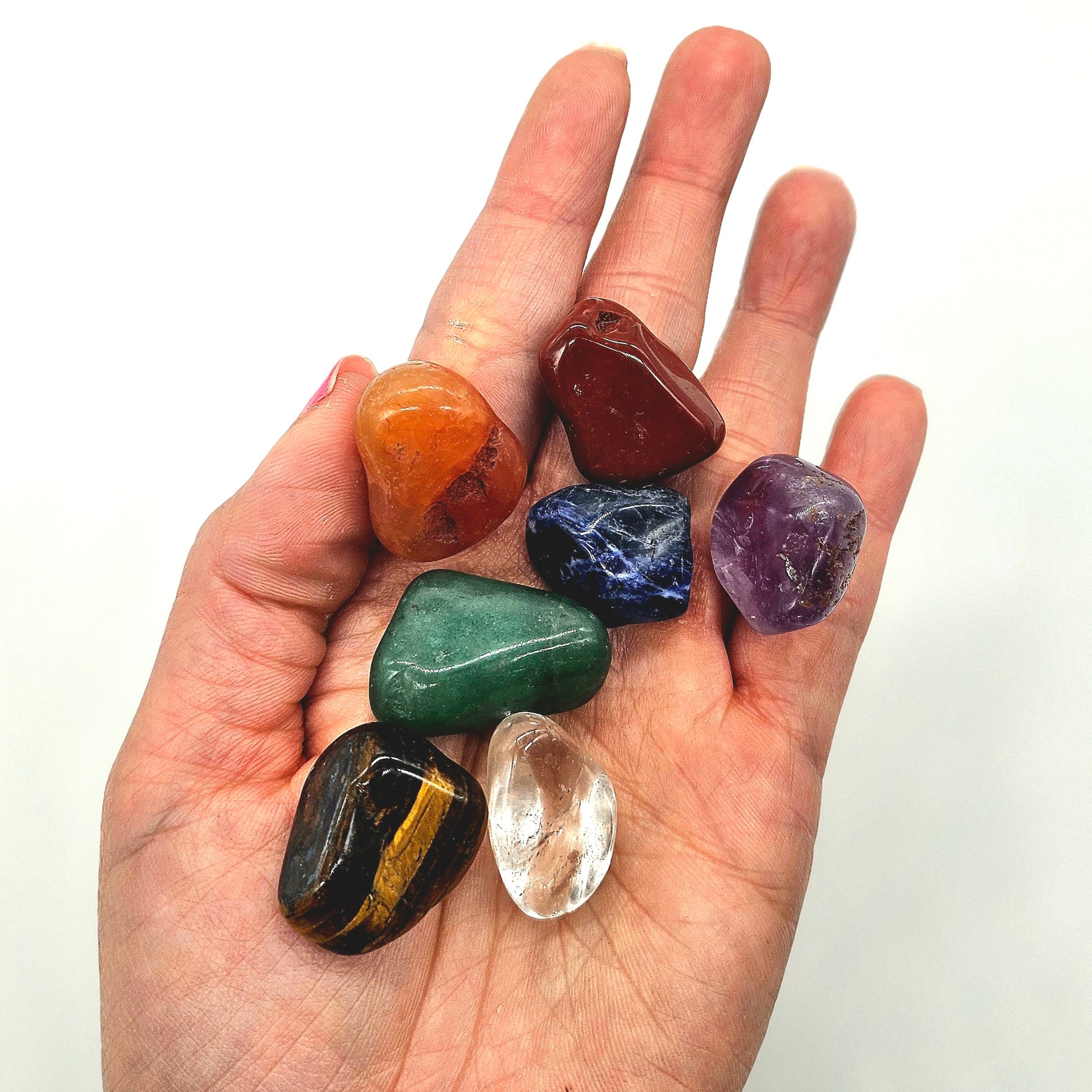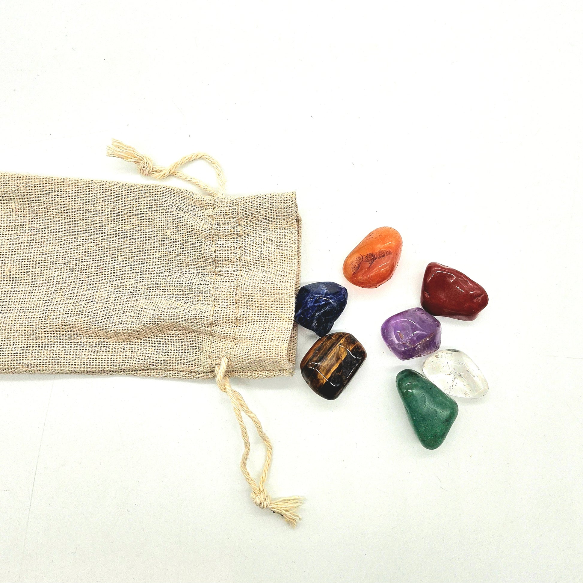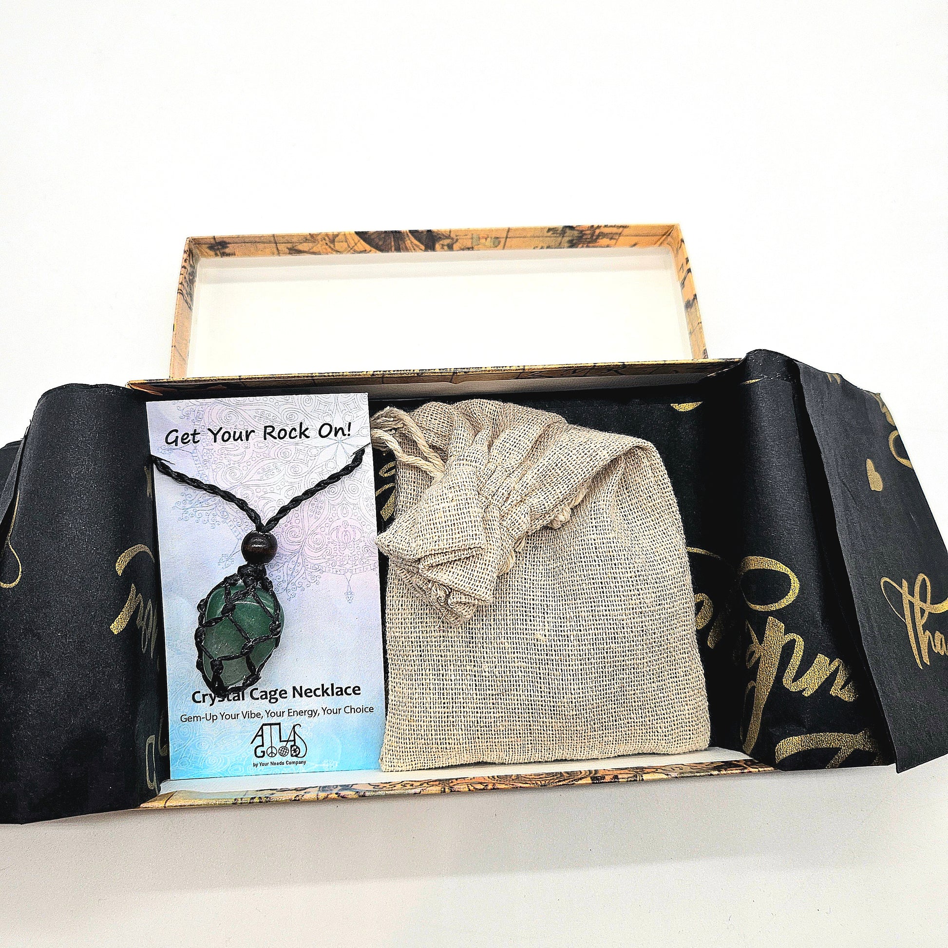 Please note that natural stones' color, shape, and size may vary. Your set includes one complimentary mystery stone, the cage necklace, seven chakra stones, a gem pouch, and an info card. Enjoy your holistic journey with our products!
