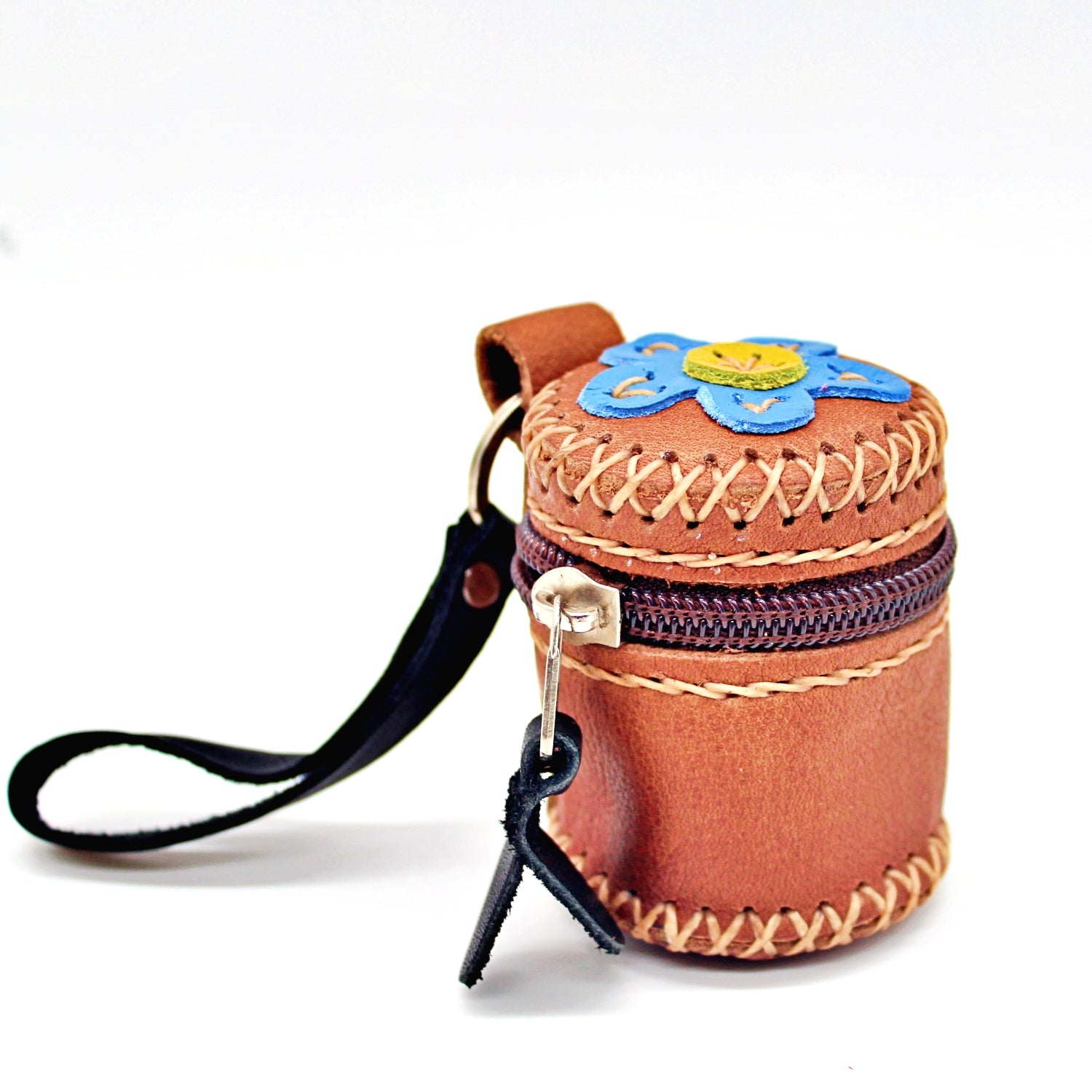 - Crafted from upcycled leather, this handmade zippered pouch is a versatile coin purse or a charming keepsake for gems. Perfect for storing jewelry, coins, or other precious items, each piece is unique and has a convenient carry loop for easy portability. Available in assorted colors, this pouch adds a touch of eco-friendly style to your valuables.