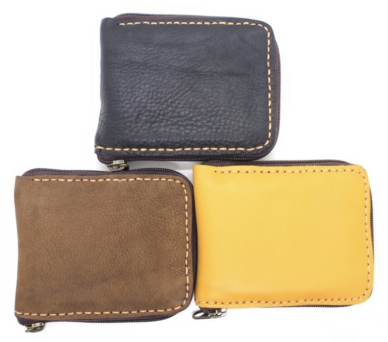 - Handcrafted leather zipper wallet from upcycled auto and furniture upholstery remnants, our unique wallets are both eco-friendly and stylish. Available in Black, Brown, and Tan. thoughtfully designed to meet your everyday needs. This wallet boasts a total of eight card slots, a convenient small zipper pocket for coins or trinkets, an ID window for easy access, and a capacious bill slot to keep your essentials neatly organized.