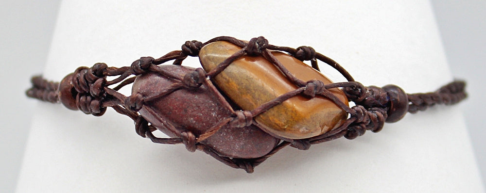 Handmade interchangeable macramé cage bracelet with tumbled stone
