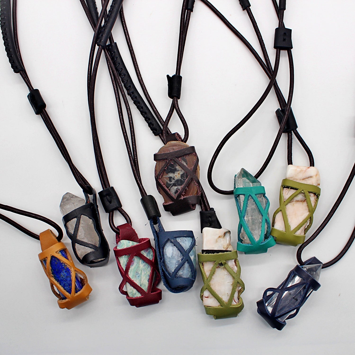 We try our best to select top quality materials and parts for all of our goods. However, slight variations and natural flaws on products may occur due to the fact that it is handmade and genuine leather. Each bag features a semi-precious stone that was thoughtfully selected to compliment the various kinds and shades of leather. Each bag is crafted as an individual piece of art.