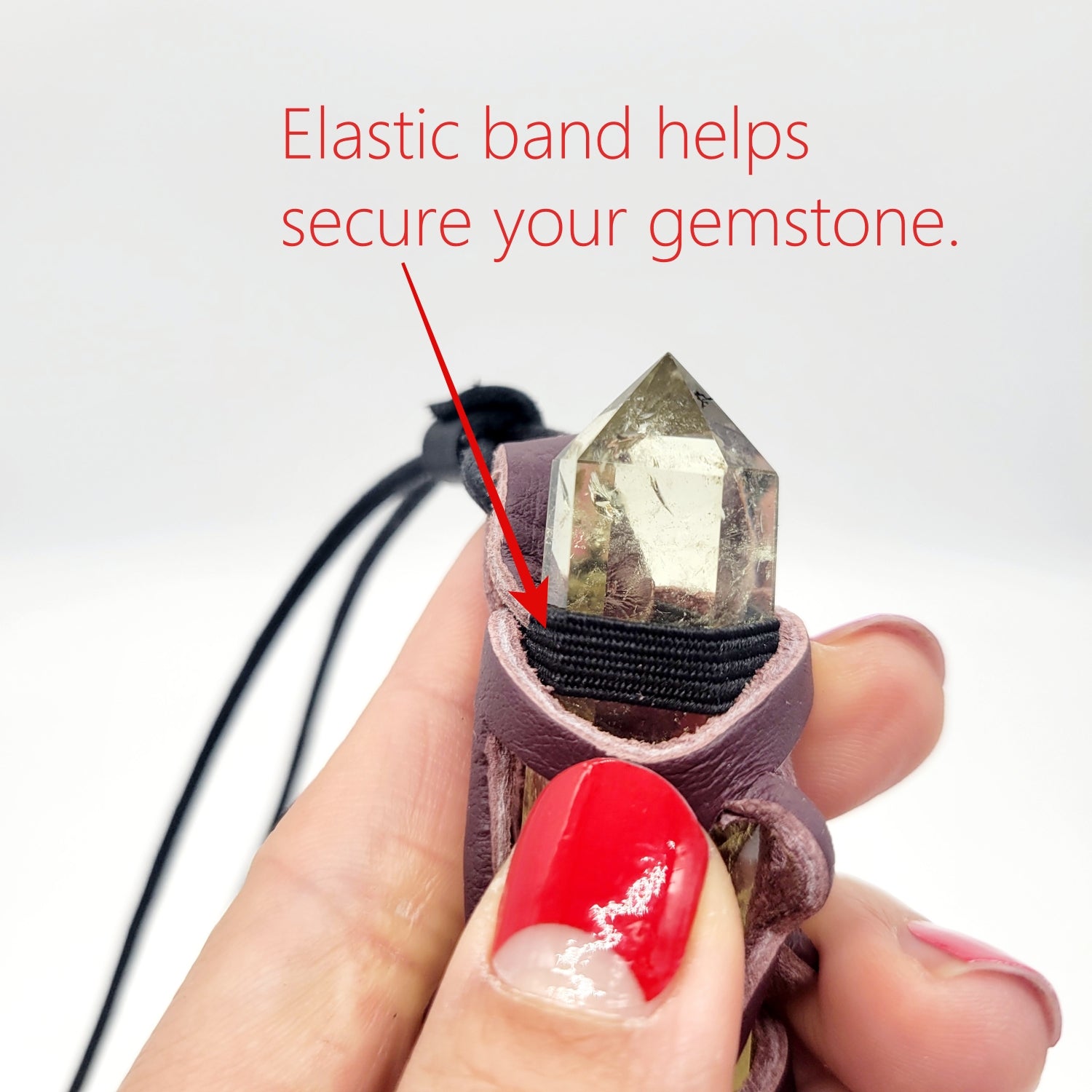We try our best to select top quality materials and parts for all of our goods. However, slight variations and natural flaws on products may occur due to the fact that it is handmade and genuine leather. Each bag features a semi-precious stone that was thoughtfully selected to compliment the various kinds and shades of leather. Each bag is crafted as an individual piece of art.