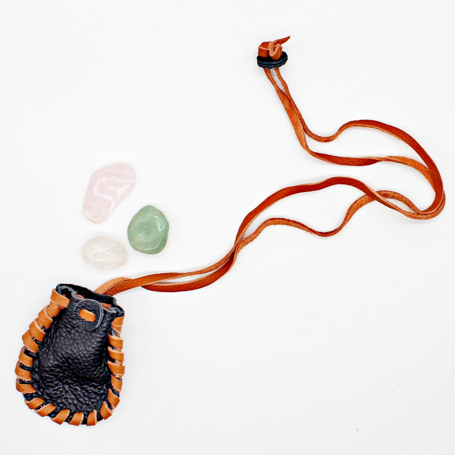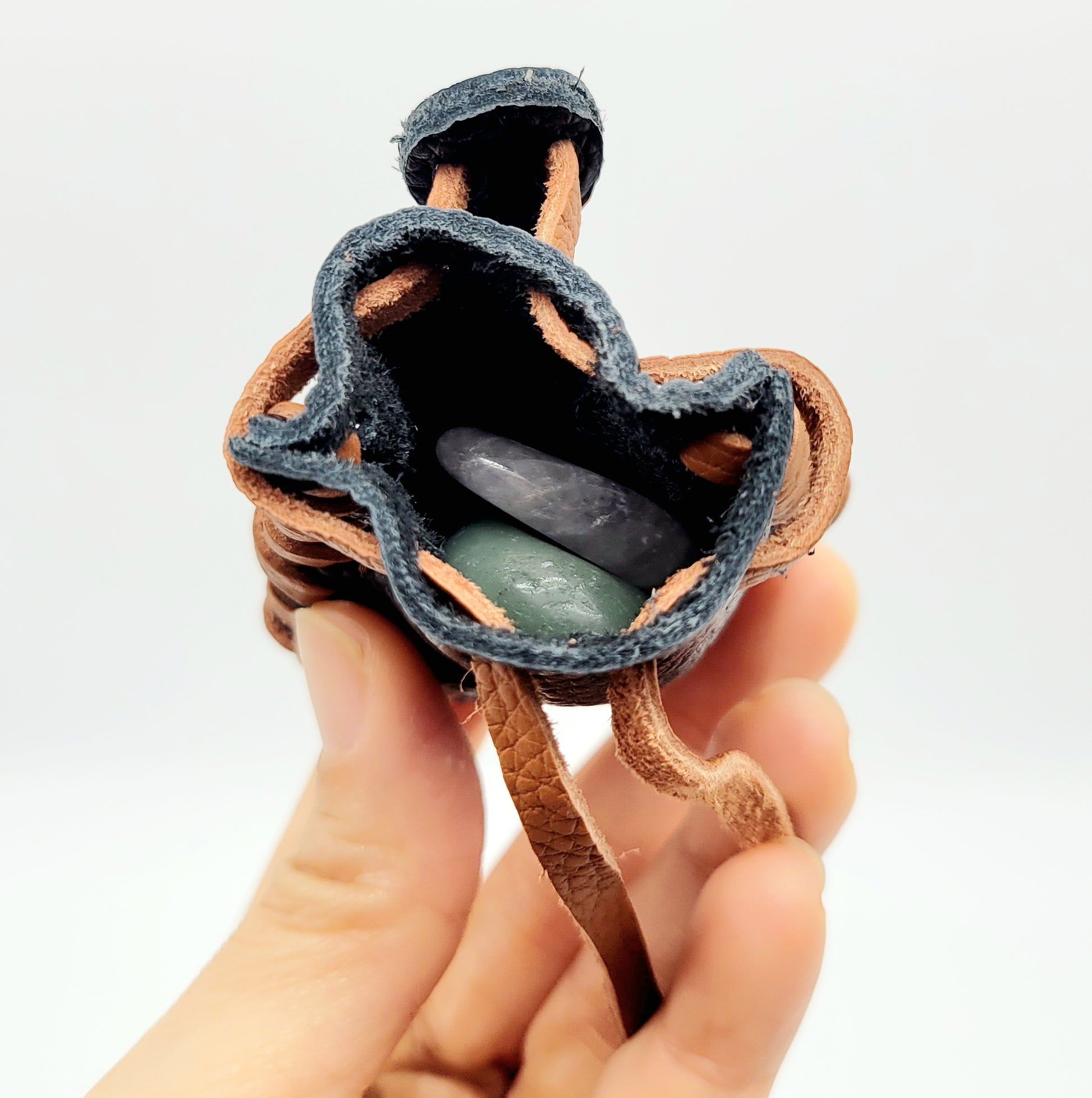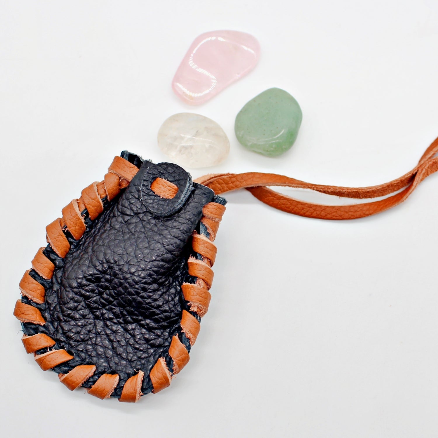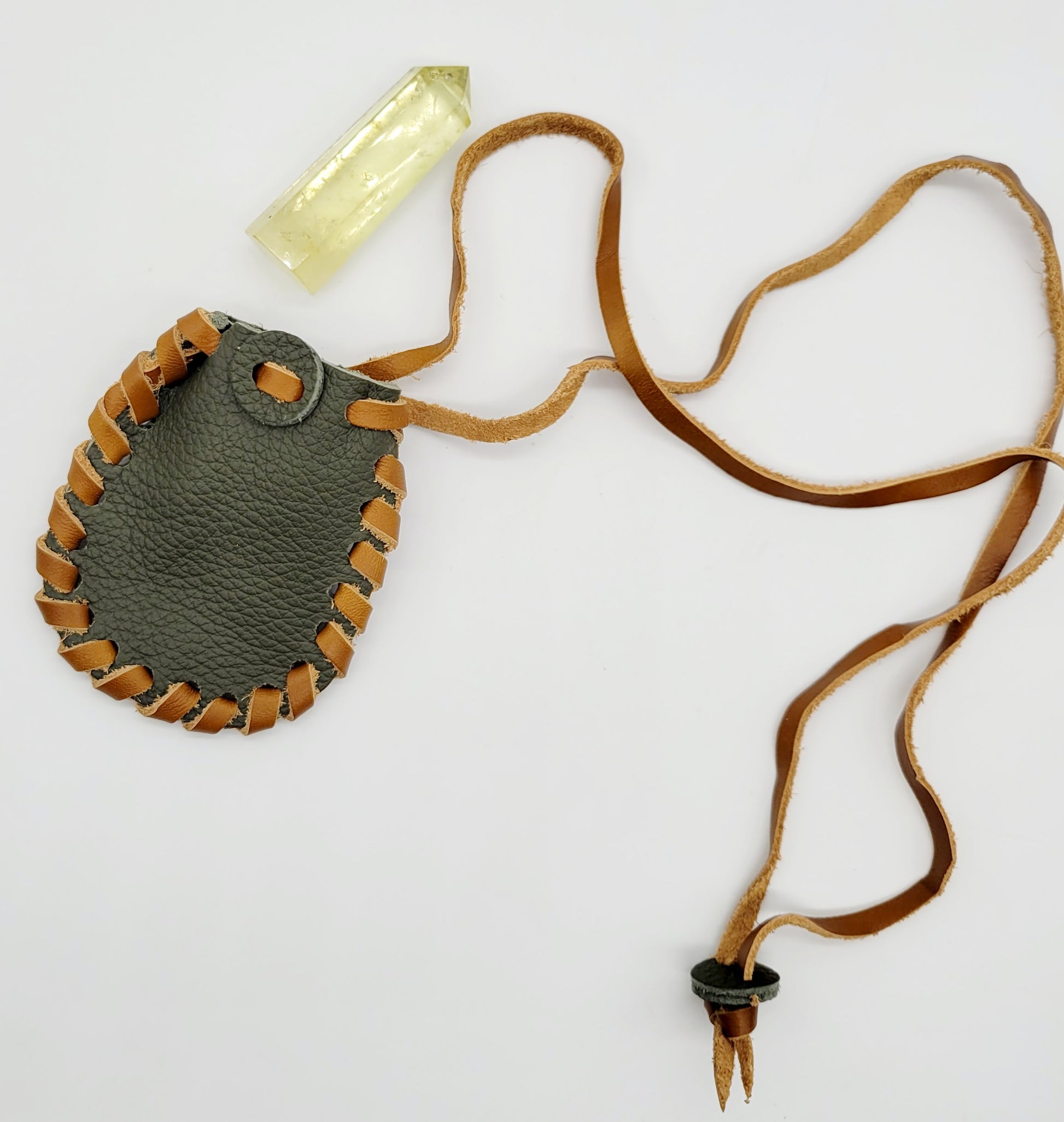 Discover the perfect blend of style and utility with our Handmade Leather Medicine Pouch Necklace. Each piece is meticulously hand-stitched with a delicate trim, making it ideal for carrying your valuable medicines, charms, gems, or herbs.