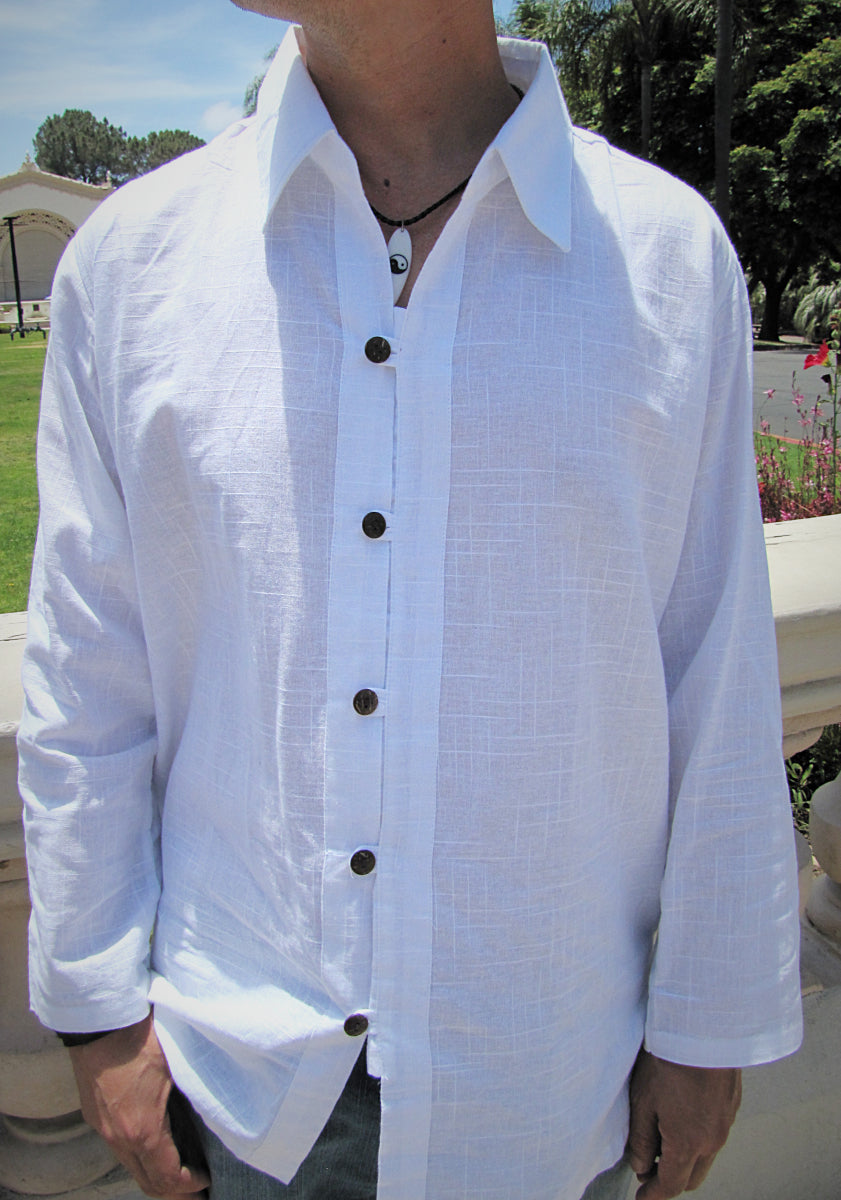 Men's shirt white button down long sleeve with coconut button / Beach wedding/ Yoga/ Renaissance Medieval