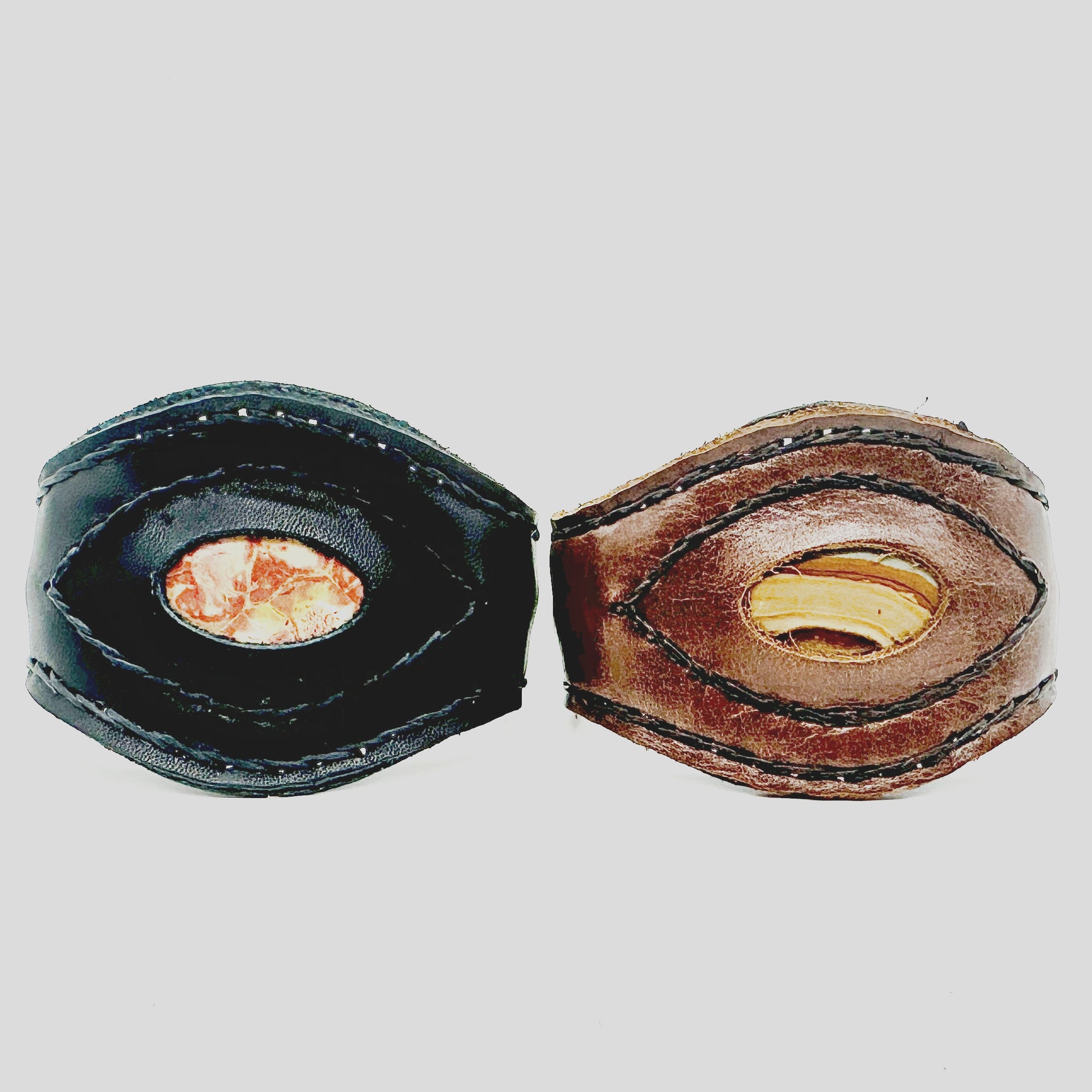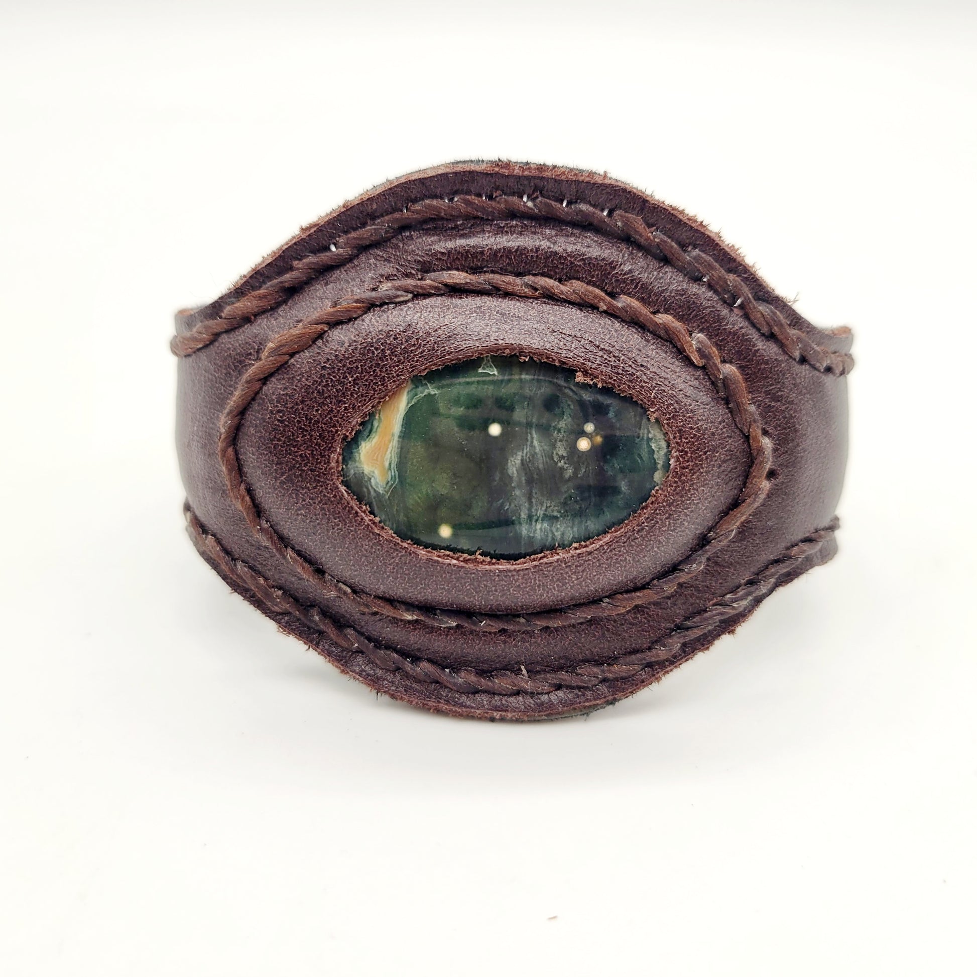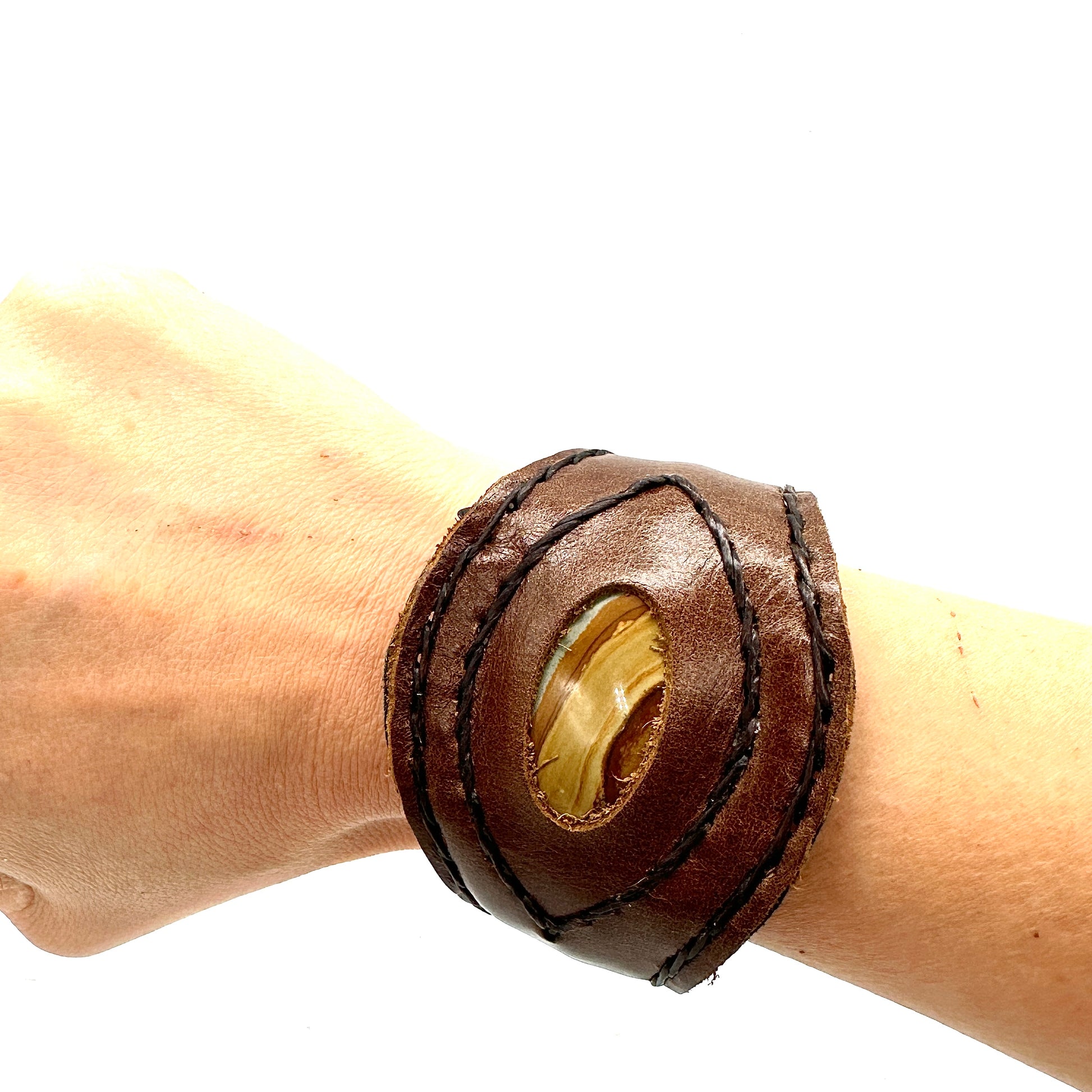 Handmade genuine leather wallet bracelets/ cuffs with gemstone