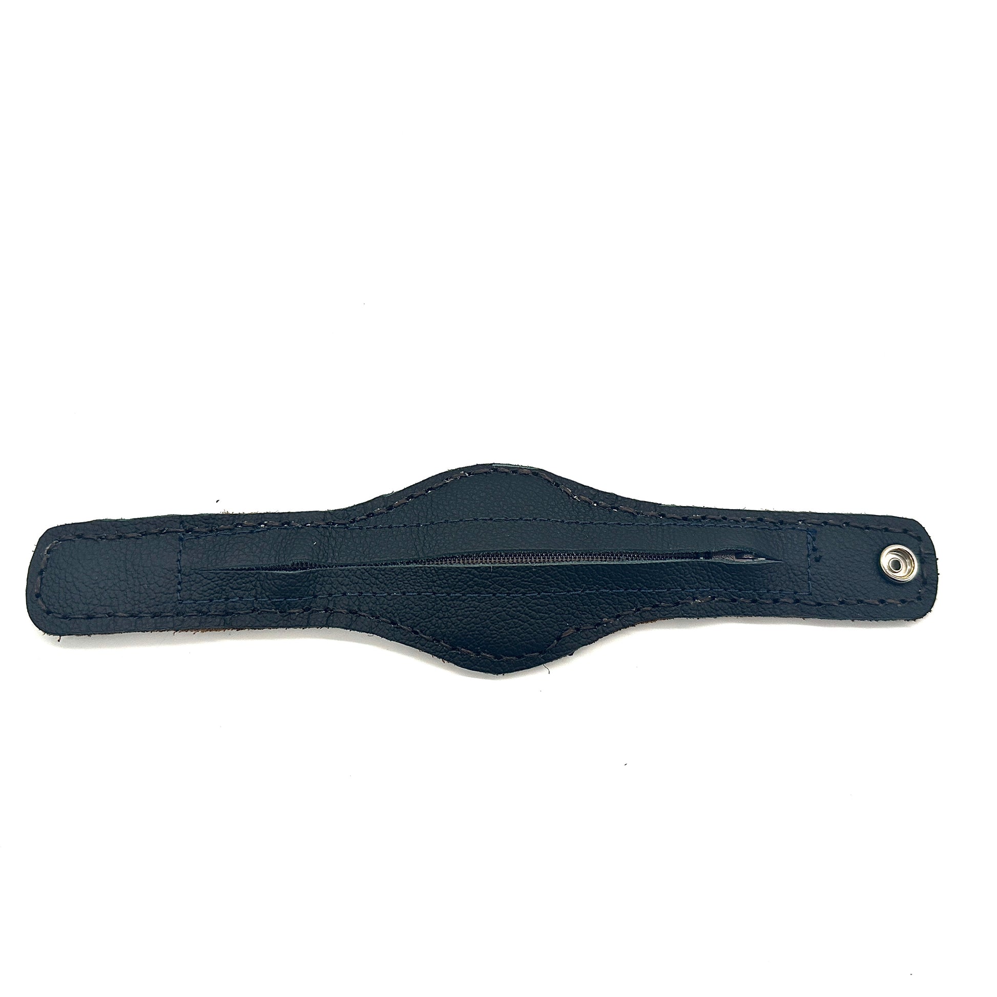 These unique cuffs feature a convenient zipper pocket and a slot designed to hold flat stones, cabochons, or charms. The stone accent can be easily changed, allowing you to alter the look of your bracelet to match your mood or outfit effortlessly.
