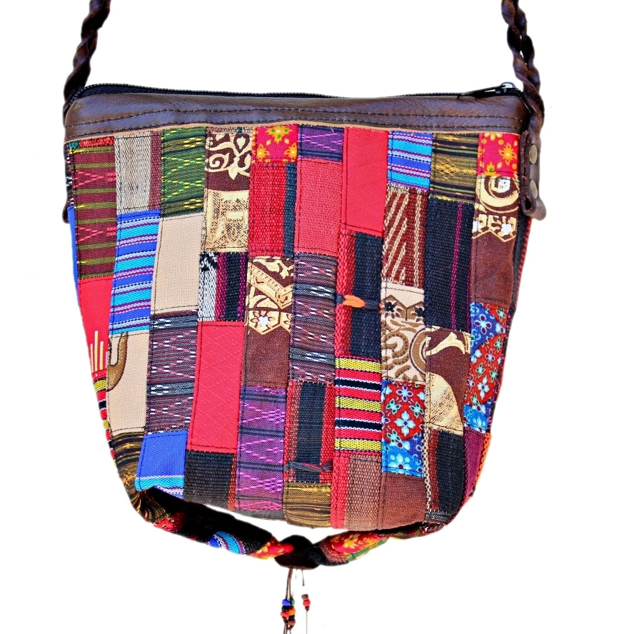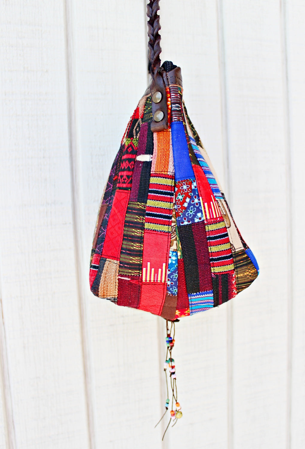 Handmade hill tribe artisan handwoven cotton patchwork crossbody small bucket bag