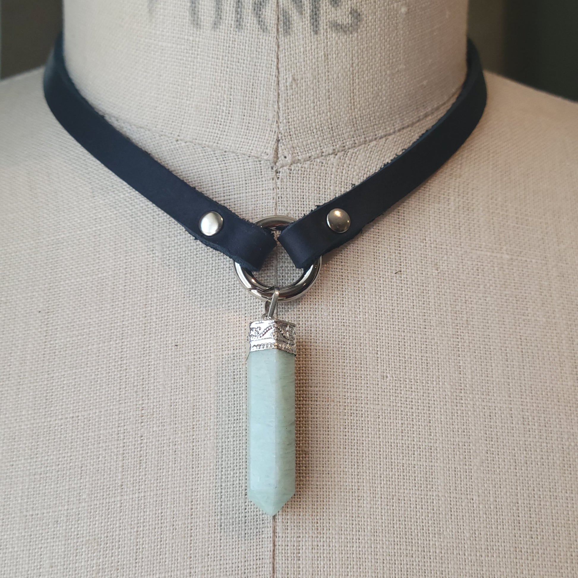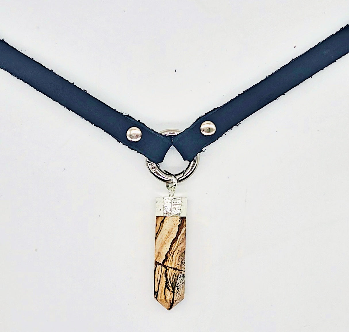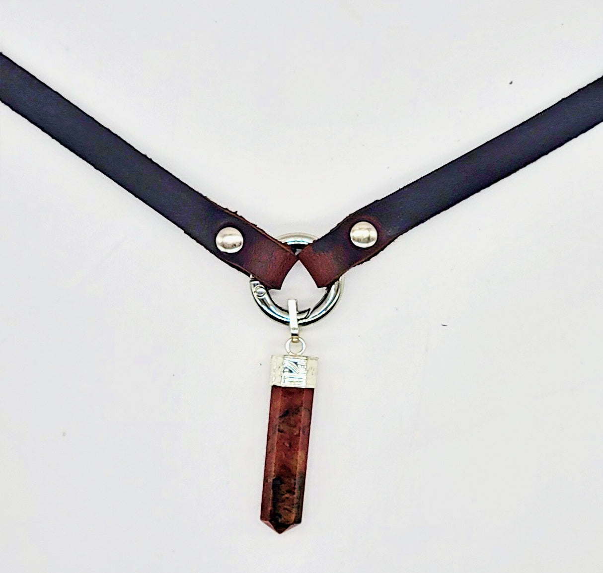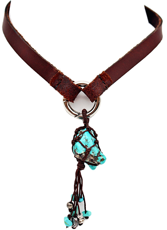 Handmade leather choker necklace with pendant