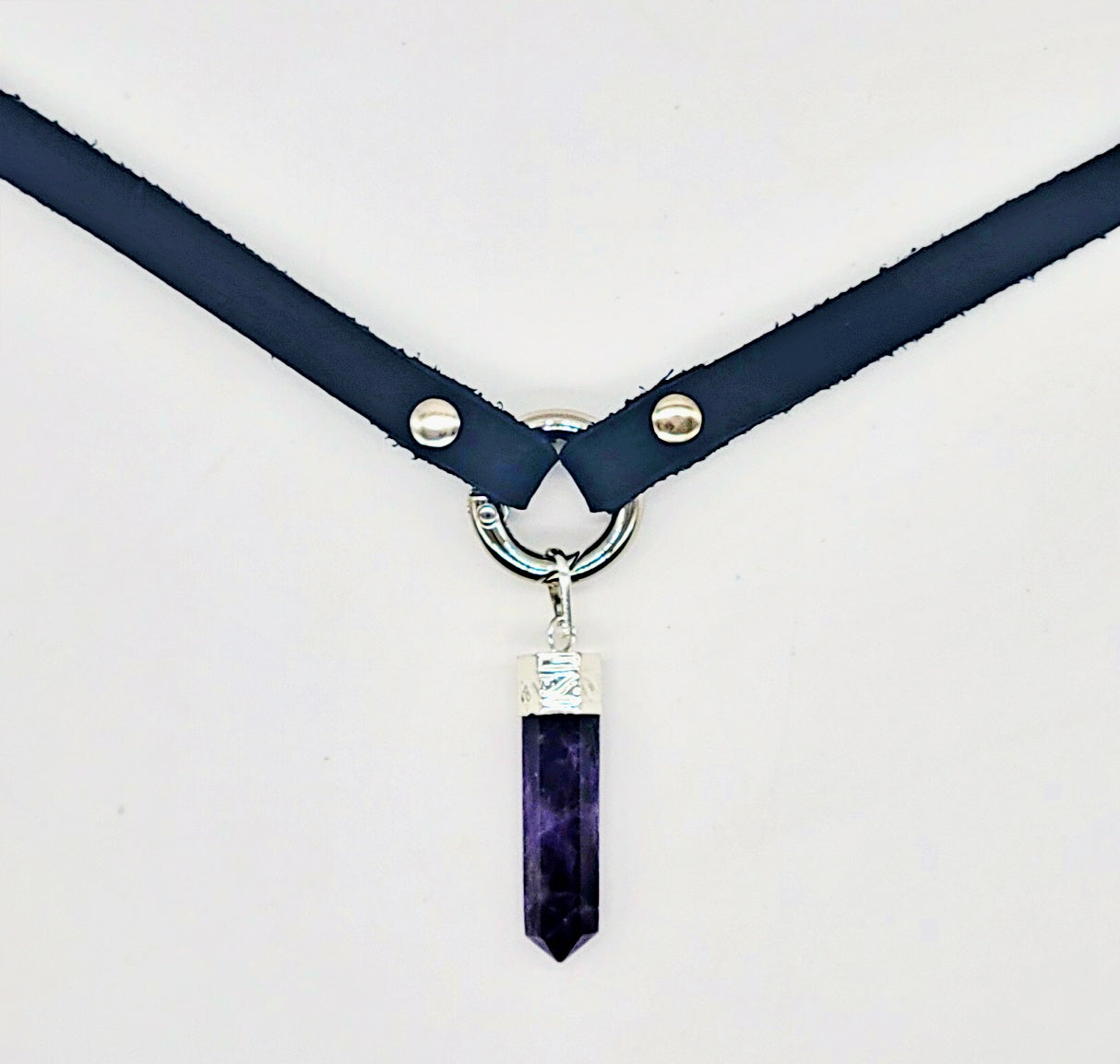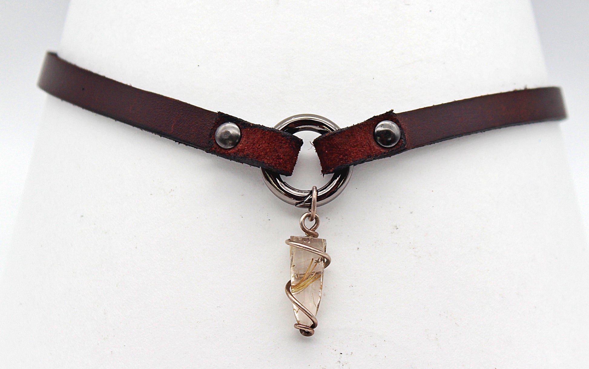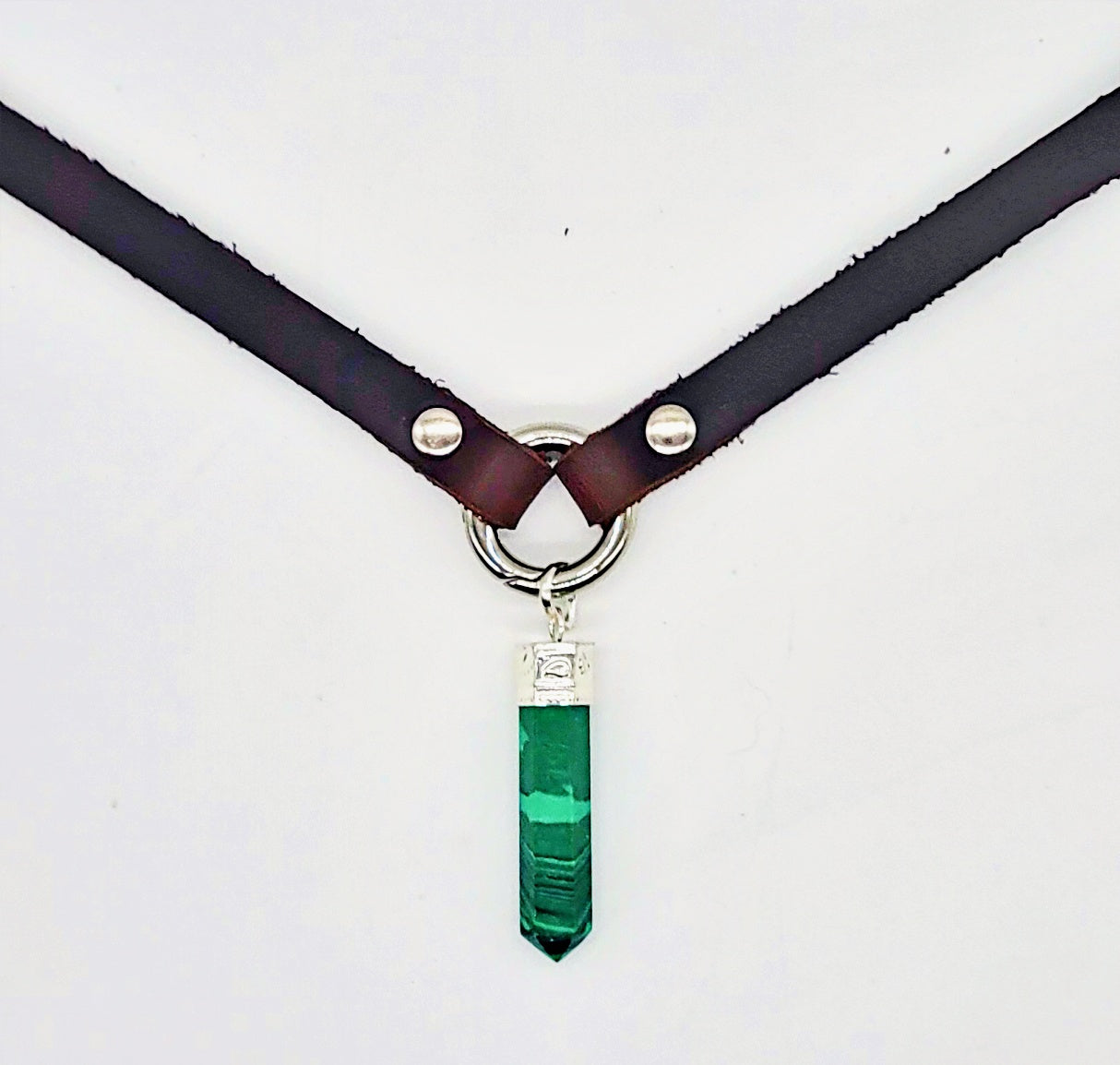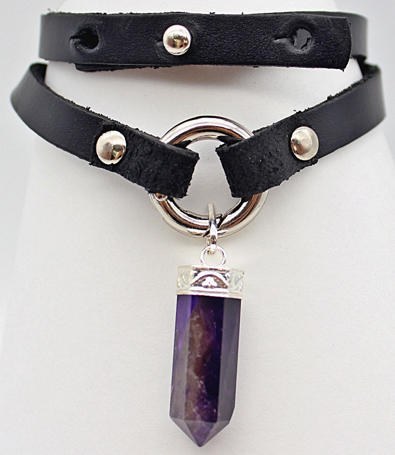 Handmade leather choker necklace with pendant
