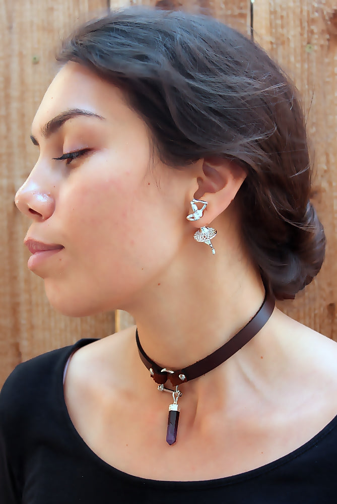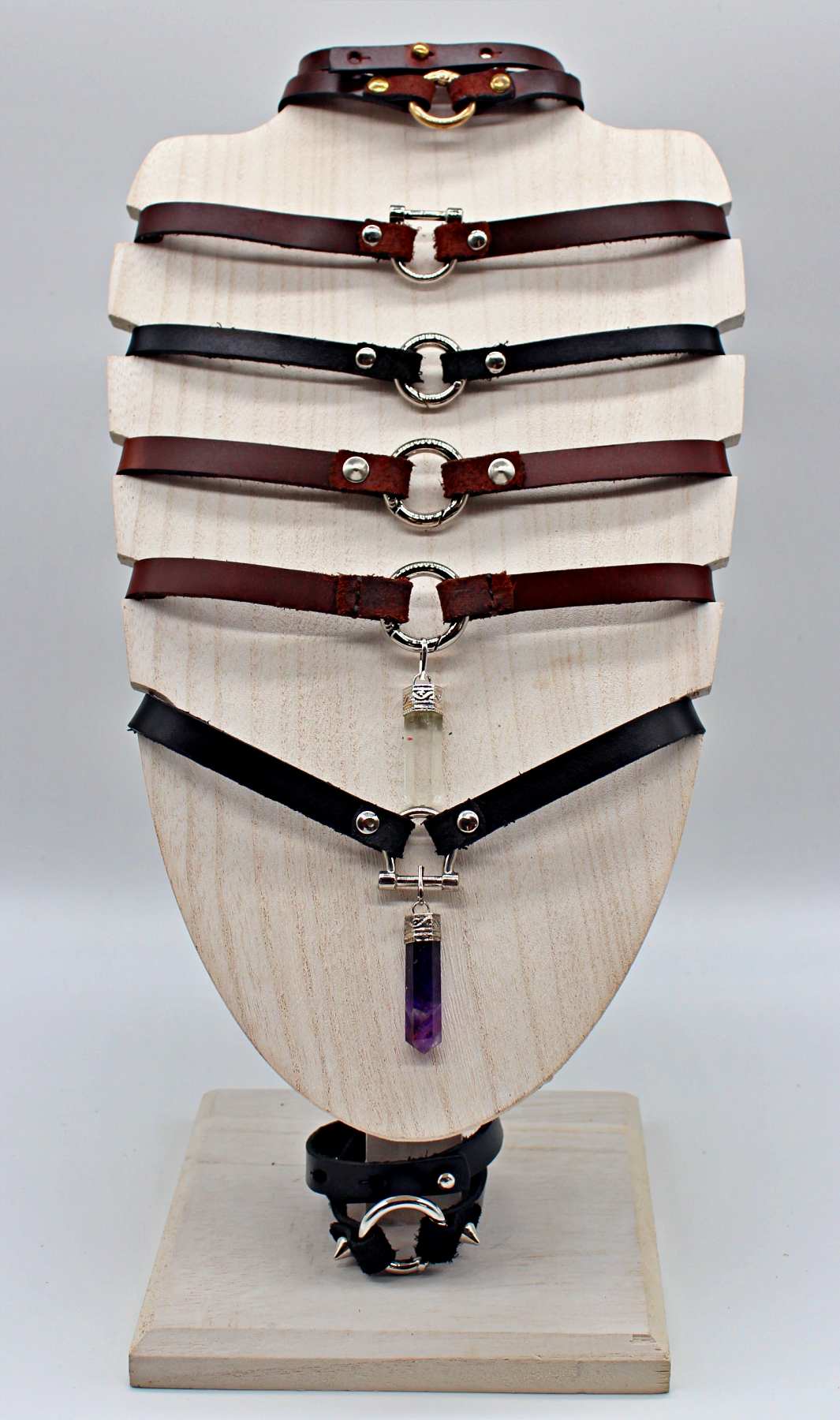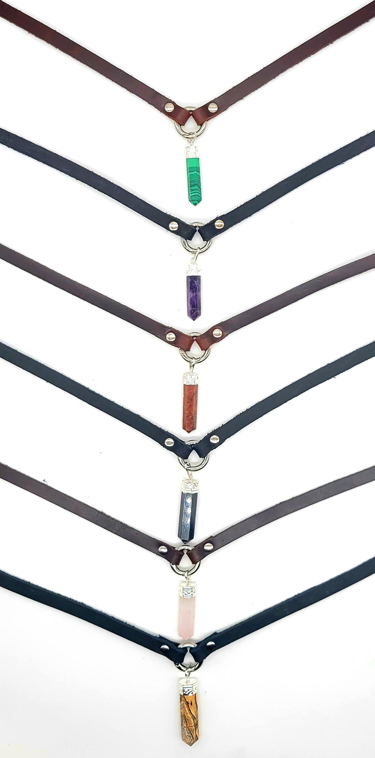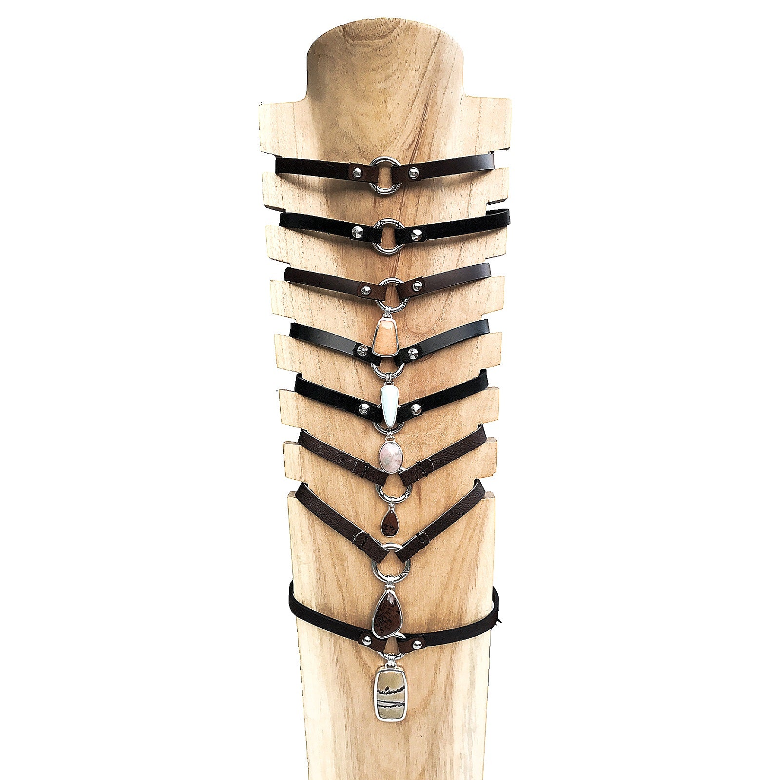 Handmade leather choker necklace with pendant
