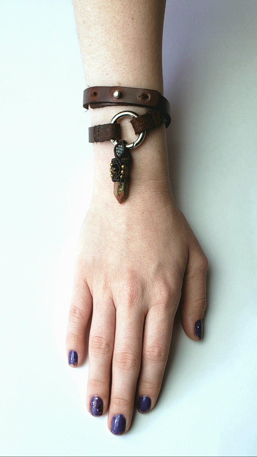 We try our best to select top quality materials and parts for all of our goods. However, slight variations and natural flaws on products may occur due to the fact that it is handmade and genuine leather. Each bag features a semi-precious stone that was thoughtfully selected to compliment the various kinds and shades of leather. Each bag is crafted as an individual piece of art.