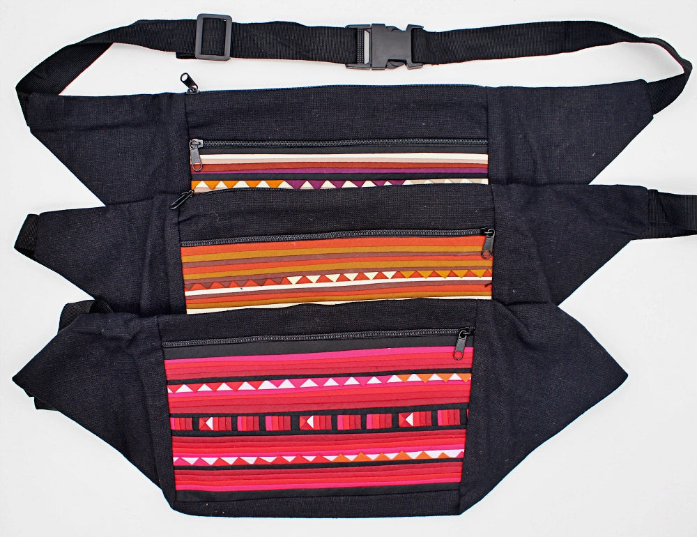 Handmade Lisu hill tribe intricate quilted belt bag/ bum bag