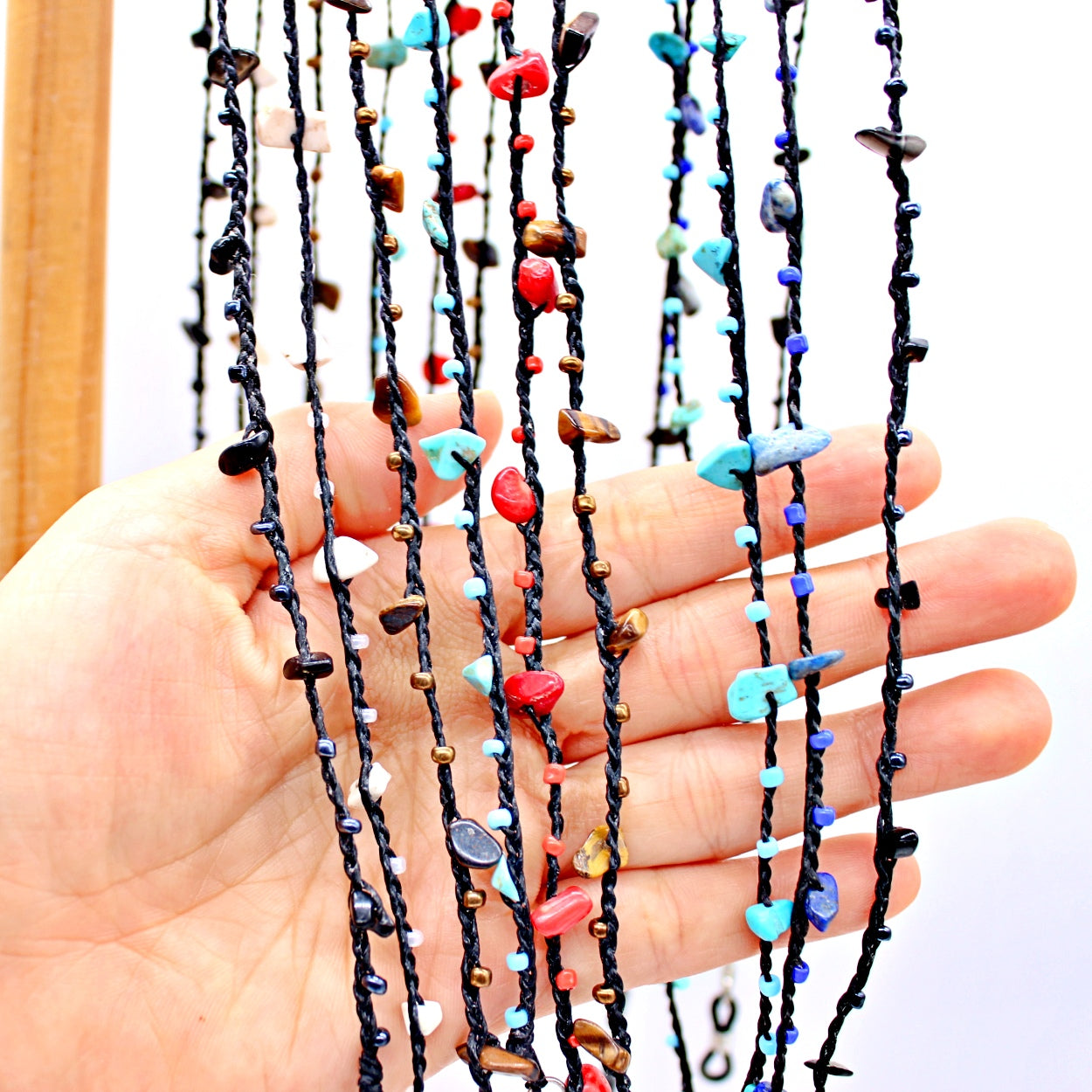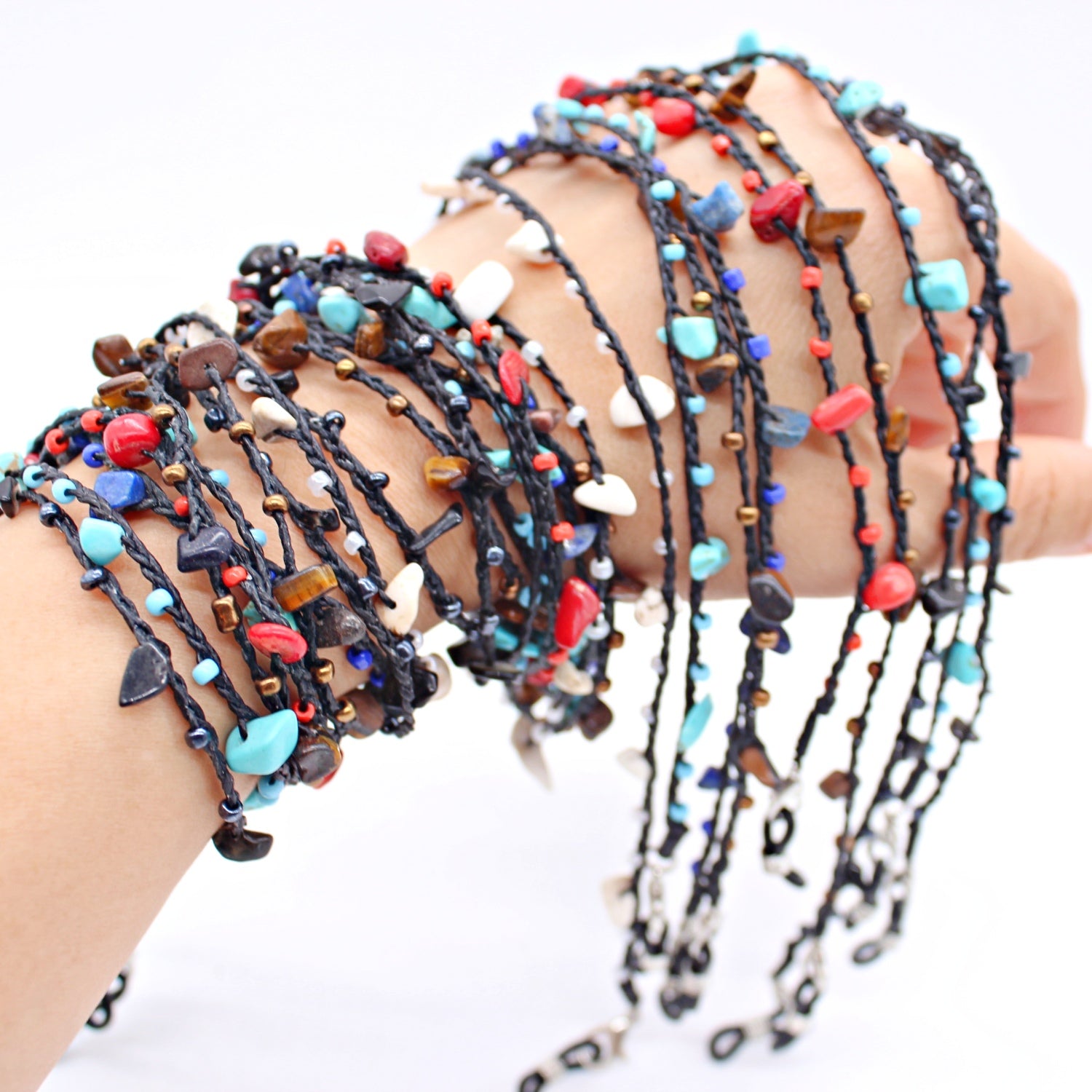 Our Handmade Macrame Small Stone Beaded Multi-Purpose Holder is a stylish and versatile accessory designed for convenience and elegance. This beautiful piece can be worn as an eyeglasses holder, mask holder, necklace, or wrap bracelet, making it a perfect addition to your accessory collection.